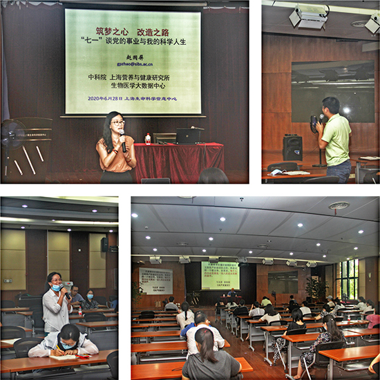 2020年6月28日下午,中科院上海生命科學(xué)信息中心黨總支組織召開慶祝建黨99周年暨“四史”學(xué)習(xí)教育主題報(bào)告會(huì),特邀中國科學(xué)院院士趙國屏研究員為全體黨員作《筑夢(mèng)之心﹒尋夢(mèng)之途﹒逐夢(mèng)之行﹒圓夢(mèng)之志——“七一”談黨的事業(yè)與我的科學(xué)人生》的主題報(bào)告。信息中心黨總支書記熊燕主持報(bào)告會(huì),信息中心各支部黨員及群眾代表參加了學(xué)習(xí)。