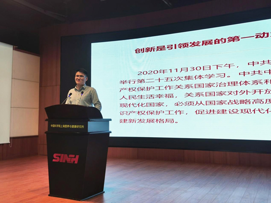 會上,信息中心第二黨支部書記陳大明做了《歷史·知識·產(chǎn)權(quán)》專題學(xué)習(xí)報告。他從“透過歷史看知識產(chǎn)權(quán)的發(fā)展”“回顧黨史看運用知識的能力”“展望未來看激勵創(chuàng)新的實踐”三個板塊講述了知識產(chǎn)權(quán)的起源,我國的知識產(chǎn)權(quán)的立法過程,以及未來創(chuàng)新環(huán)境中知識產(chǎn)權(quán)全鏈條的創(chuàng)新治理等思考。在學(xué)習(xí)總結(jié)中,蔡澎書記發(fā)言指出,要以史為鑒、以史為師,了解、熟悉知識產(chǎn)權(quán)的“游戲規(guī)則”與全球競爭中的經(jīng)驗教訓(xùn),在中國融入全球創(chuàng)新網(wǎng)絡(luò)的過程中打造國際知識產(chǎn)權(quán)高地,最終獲得科技的自立、自強與自信。