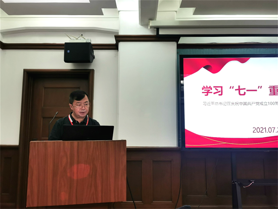 7月22日下午,中國科學院上海營養(yǎng)與健康研究所召開黨委理論中心組(擴大)暨黨史學習教育,黨委書記蔡澎作《學習習近平總書記在慶祝建黨百年大會重要講話》主題黨課報告認真學習貫徹習近平總書記在慶祝中國共產(chǎn)黨成立100周年大會重要講話精神。報告全面回顧習近平總書記發(fā)表重要講話的精神,并指出習近平總書記的重要講話深情回望中國共產(chǎn)黨團結(jié)帶領中國人民開辟偉大道路、創(chuàng)造偉大事業(yè)、取得偉大成就的歷史,深刻揭示中國共產(chǎn)黨的精神之源和政治品格,堅定地表明了黨帶領全國各族人民在前進征程上不斷創(chuàng)造新的歷史偉業(yè)、爭取更大光榮的決心和信心。同時,面向國家需求、結(jié)合研究所“十四五”規(guī)劃和科研布局,要求全所黨員更加奮發(fā)有為地履職盡責、踐行初心使命,以嶄新精神狀態(tài)和奮進姿態(tài)投身研究所發(fā)展。