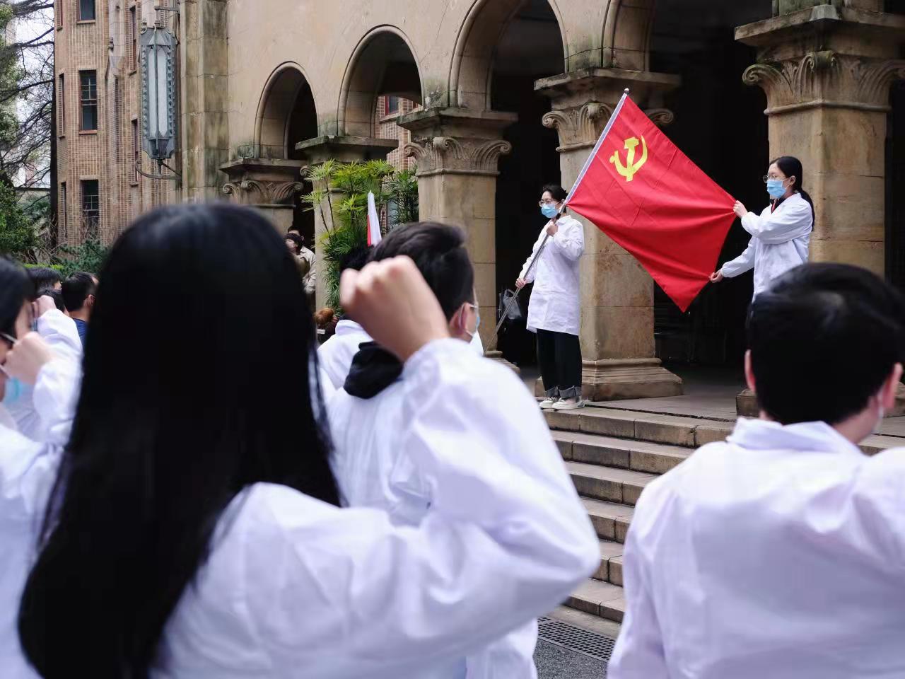 簡短的出征儀式在嘹亮的國歌聲中緩緩拉開序幕,營養(yǎng)與健康所核酸檢測(cè)志愿者臨時(shí)黨支部書記吳小霞激動(dòng)地接過了授旗并帶領(lǐng)大家重溫入黨誓詞,志愿者代表王永強(qiáng)熱情洋溢地表達(dá)了對(duì)此次守“滬”行動(dòng)的感想和決心,全體志愿者們發(fā)自內(nèi)心同聲高呼“抗疫有我、不負(fù)青春”的口號(hào)響徹了整個(gè)園區(qū)。
