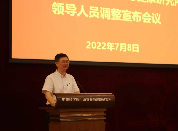 2022年7月8日下午,中科院上海營(yíng)養(yǎng)與健康研究所召開領(lǐng)導(dǎo)人員調(diào)整宣布會(huì)議,上海分院分黨組書記、滬區(qū)黨委書記李正華,上海市科技黨委及上海分院組織部門相關(guān)同志,研究所領(lǐng)導(dǎo)班子成員、兩委委員、科研骨干代表、中層干部、黨支部書記等參加會(huì)議。會(huì)議由上海分院人力資源部主任兼組織干部處處長(zhǎng)胡嘉主持。