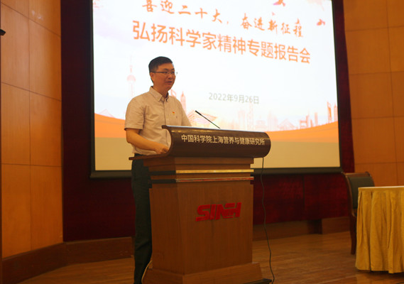 為深入實(shí)施“傳承老科學(xué)家精神 弘揚(yáng)新時代科學(xué)家精神在行動”專項(xiàng)工作,推動全所干部職工踐行科學(xué)家精神、建功立業(yè)新時代,以良好精神面貌和優(yōu)異科研成績迎接黨的二十大勝利召開,上海營養(yǎng)與健康研究所黨委于9月26日上午組織召開“喜迎二十大,奮進(jìn)新征程”弘揚(yáng)科學(xué)家精神主題報(bào)告會暨青年科技骨干主題分享會,所領(lǐng)導(dǎo)班子成員、黨委委員、黨支部書記、相關(guān)職能部門負(fù)責(zé)人、青年理論學(xué)習(xí)小組成員以及部分科研骨干代表百余人參加活動。黨委書記瞿榮輝、紀(jì)委書記曹永分別主持報(bào)告會。