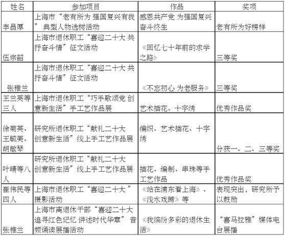 為喜迎黨的二十大勝利召開(kāi),頌揚(yáng)新時(shí)代的輝煌變化,研究所于8月至10月期間組織了退休職工“喜迎二十大”系列活動(dòng),老同志們熱情響應(yīng),將愛(ài)黨愛(ài)國(guó)的政治熱情轉(zhuǎn)化為創(chuàng)作動(dòng)力,用妙筆、用巧手、用鏡頭向二十大獻(xiàn)禮50余件原創(chuàng)作品。