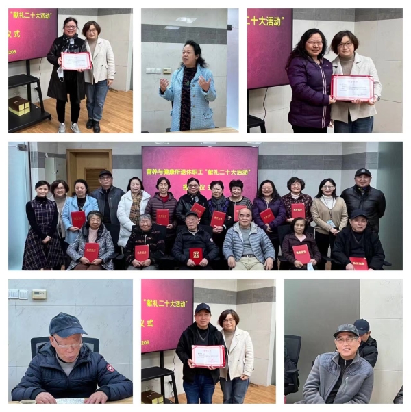 12月8日,營(yíng)養(yǎng)與健康所舉辦退休職工“喜迎二十大系列活動(dòng)”授獎(jiǎng)儀式,獲獎(jiǎng)退休職工、退休支部書(shū)記等20多人參加了儀式。