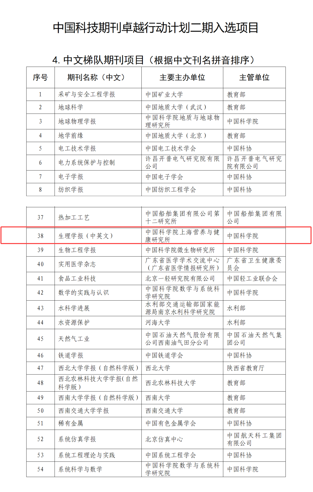 此次入選是對《生理學報》多年來堅持高質(zhì)量出版、服務科學研究的肯定,也是《生理學報》編委會、審稿專家、編輯部、廣大作者和讀者共同努力的結果。