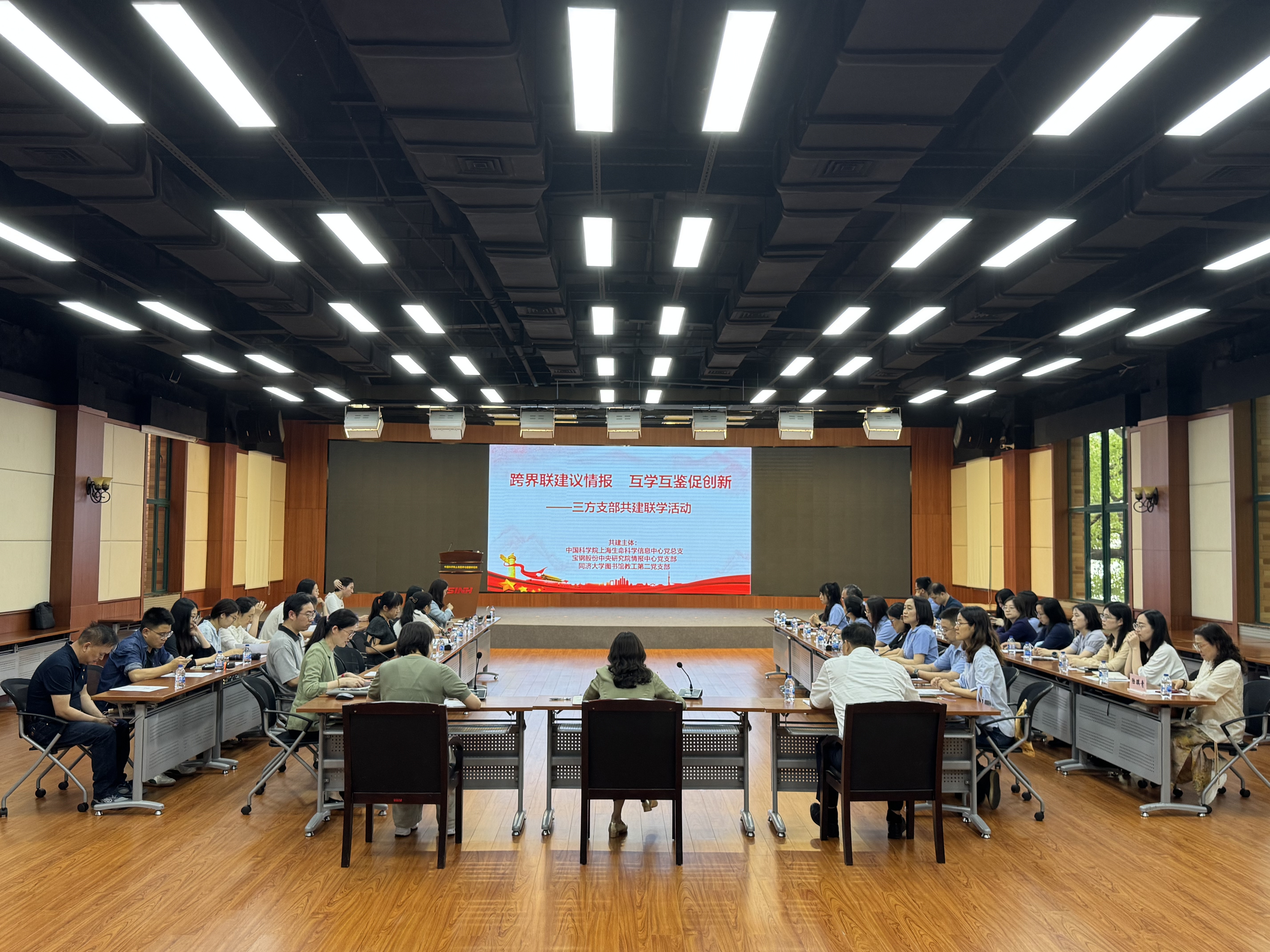 為提高支部黨員思想站位,增強(qiáng)業(yè)務(wù)能力,6月13日下午,中國科學(xué)院上海營養(yǎng)與健康研究所信息中心黨總支、寶鋼股份中央研究院情報(bào)中心黨支部、同濟(jì)大學(xué)圖書館教工第二黨支部在信息中心明德廳聯(lián)合舉辦了主題為“跨界聯(lián)建議情報(bào) 互學(xué)互鑒促創(chuàng)新”的共建聯(lián)學(xué)活動,上海圖書館(上海科學(xué)技術(shù)情報(bào)研究所)協(xié)調(diào)輔導(dǎo)處黨支部列席參加此次活動。活動吸引了40余名黨員同志參與。與會單位以黨建為紐帶,深入貫徹中央八項(xiàng)規(guī)定精神學(xué)習(xí)教育,聚焦科技情報(bào)賦能創(chuàng)新發(fā)展交流工作思路與實(shí)踐經(jīng)驗(yàn)。信息中心黨總支書記熊燕、寶鋼股份中央研究院情報(bào)中心主任陳秋建等出席此次活動?;顒佑尚畔⒅行牡诙h支部承辦,黨總支副書記沈東婧主持。