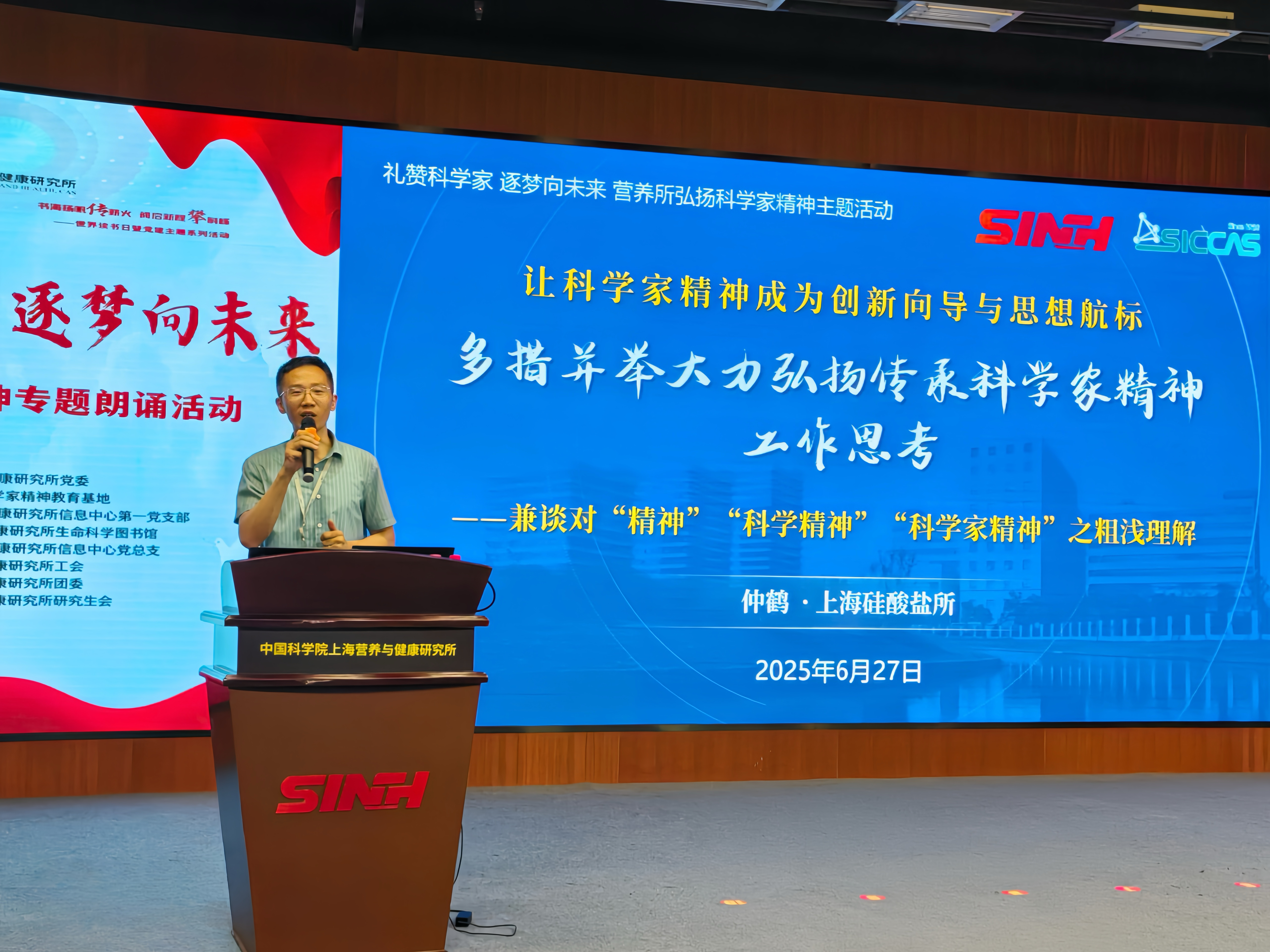 為致敬科學(xué)家,激勵科技工作者們堅定科技報國信念、勇攀科學(xué)高峰,6月27日下午,中國科學(xué)院上海營養(yǎng)與健康研究所舉行弘揚(yáng)科學(xué)家精神專題朗誦活動。信息中心副主任、黨總支副書記沈東婧主持活動。