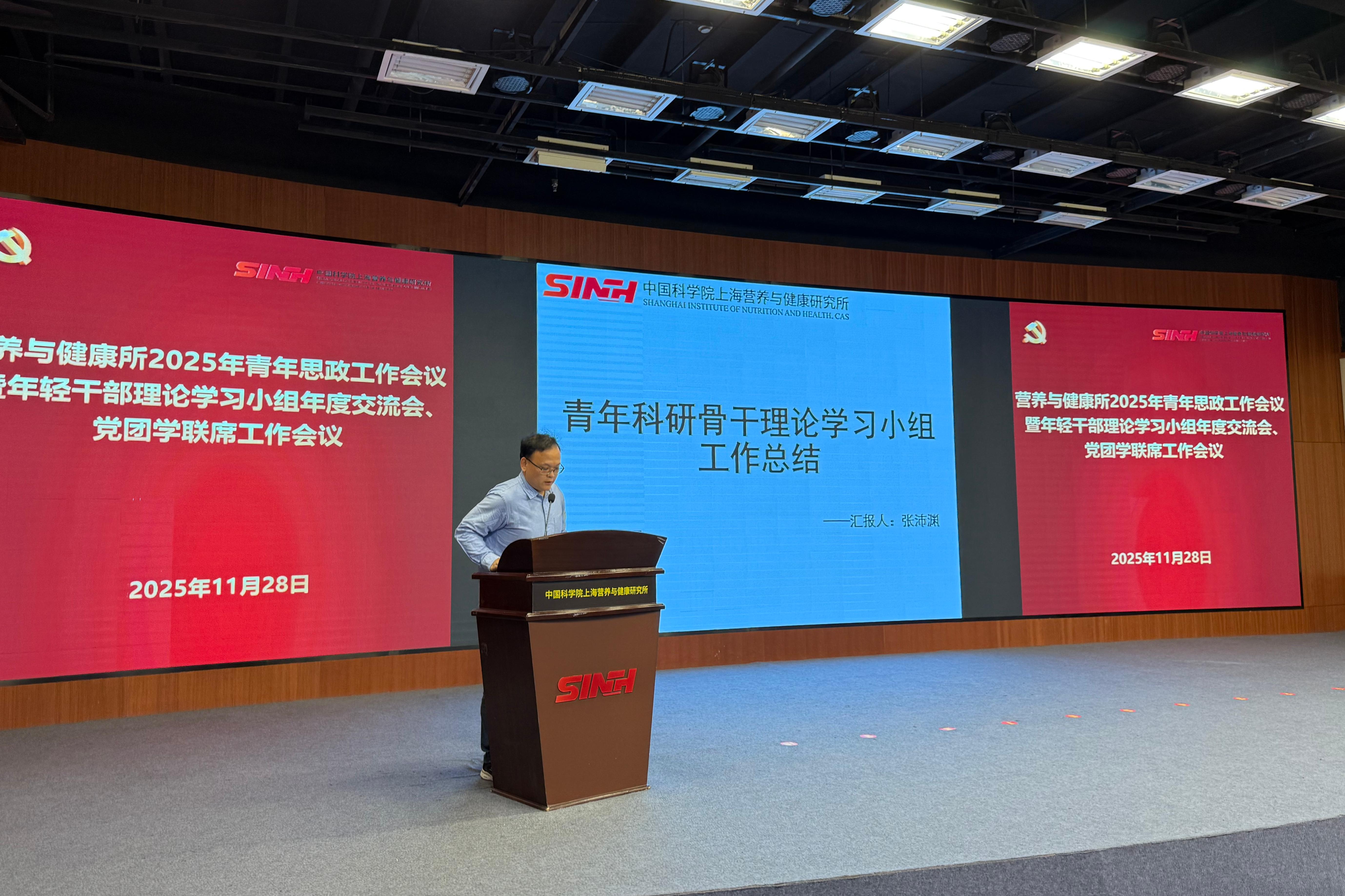 11月28日下午,為進一步推動青年干部和科研人員在研究所高質(zhì)量發(fā)展新征程中展現(xiàn)新?lián)?、實現(xiàn)新作為,中國科學(xué)院上海營養(yǎng)與健康研究所召開2025年青年思政工作會議暨黨團學(xué)聯(lián)席工作會議。營養(yǎng)與健康所黨委書記瞿榮輝、紀委書記曹永、相關(guān)職能部門和黨組織負責人、輔導(dǎo)員代表、各支部青年委員、青年理論學(xué)習(xí)小組組長及研究生代表近50人參會。
